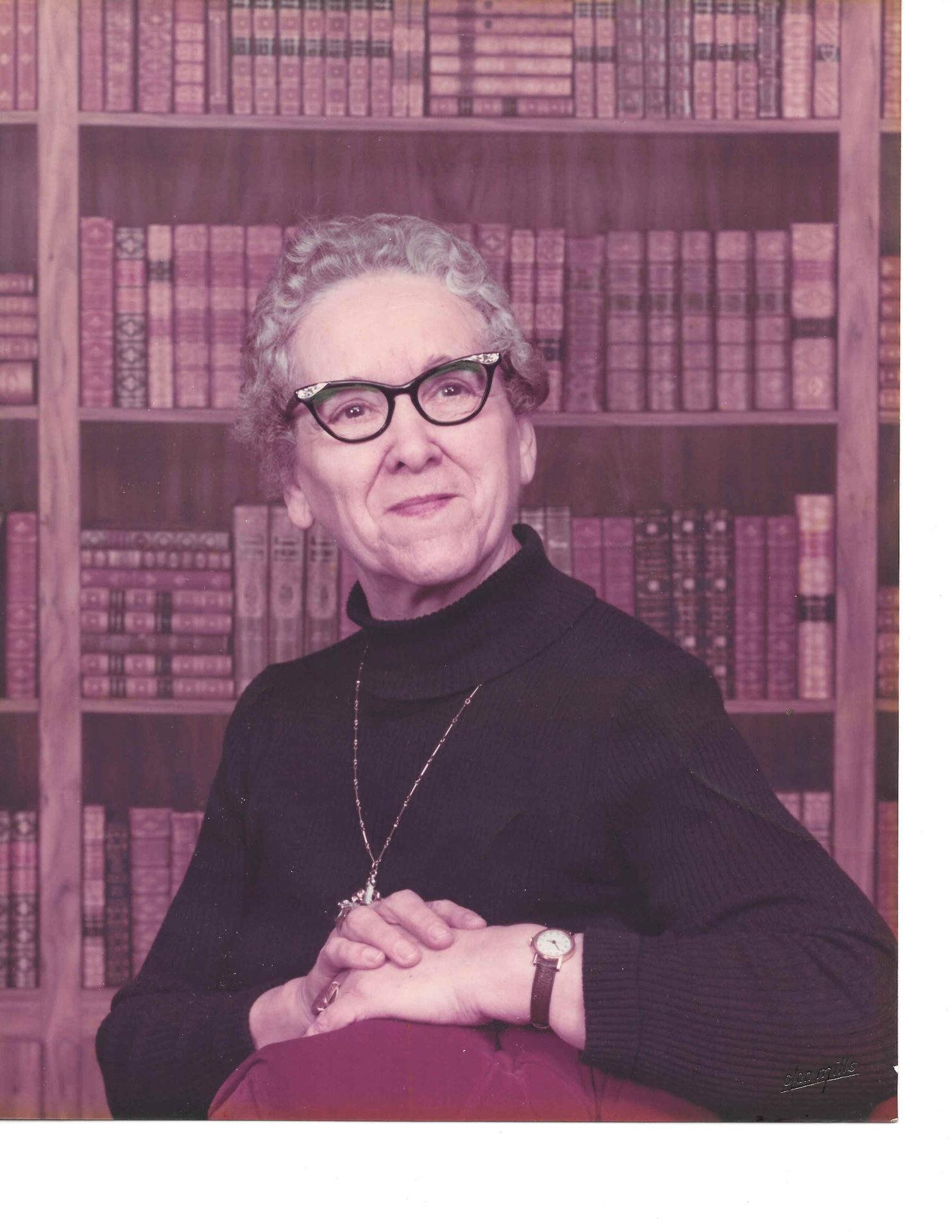 I loved the idea, so we rummaged through some old scrapbooks, found a nice picture of Grandma, posing for the Olan Mills photographer in front of the fake bookshelf background, enlarged it, stuck it in a frame, and hung it up. Although we didn’t orchestrate the placement of her picture behind me at the market checkout counter, it appeared that she was peering over my right shoulder, proud of her grandson.